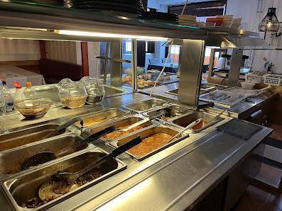 Andra intressanta uppgifter: Hemkörning, Avhämtning, Servering, Rullstolstillgänglig ingång, Rullstolstillgänglig parkering, Rullstolstillgänglig toalett, Rullstolstillgängliga sittplatser, Alkohol, Buffé, Kaffe, Smårätter, Öl, Lunch, Middag, Catering, Efterrätt, Sittplatser, Toalett, Avslappnat, Mysigt, Familjevänligt, Grupper, Hbtq+-vänlig, Trygg plats för transpersoner, Tar emot bokningar, Betalkort, Checkar, Kreditkort, NFC-betalningar med mobiler, Kreditkort, Barnmeny, Barnstolar, Passar för barn, Avgiftsfri gatuparkering, Avgiftsfri parkering, Parkering.