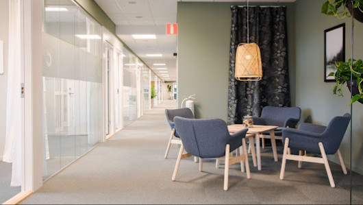 Kontoret er også designet til at være tilgængeligt for handicappede klienter, med en specialdesignet toilet for rullestolbrugere. Dette bekræfter firmaets engagement i at tilbyde en inkluderende og tilgængelig tjeneste for alle klienter.
